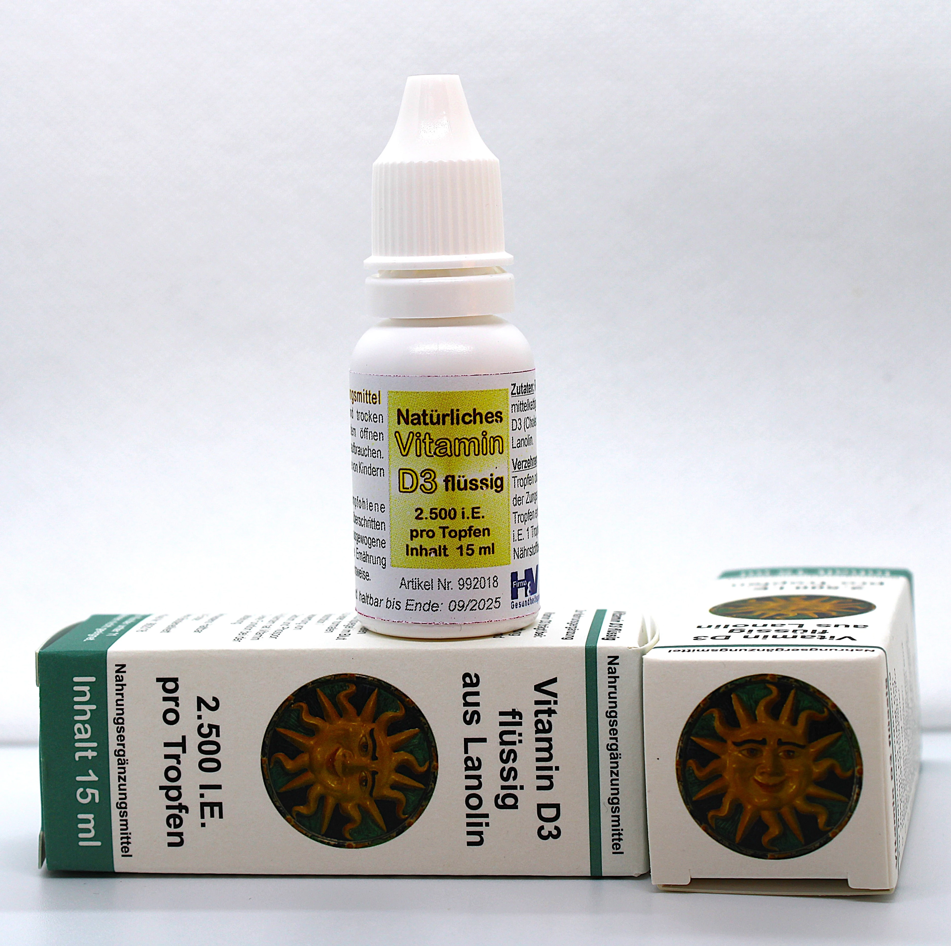 Vitamin-D3 flüssig aus Lanolin Flasche mit 15 ml pro Tropfen 2.500 I.E.