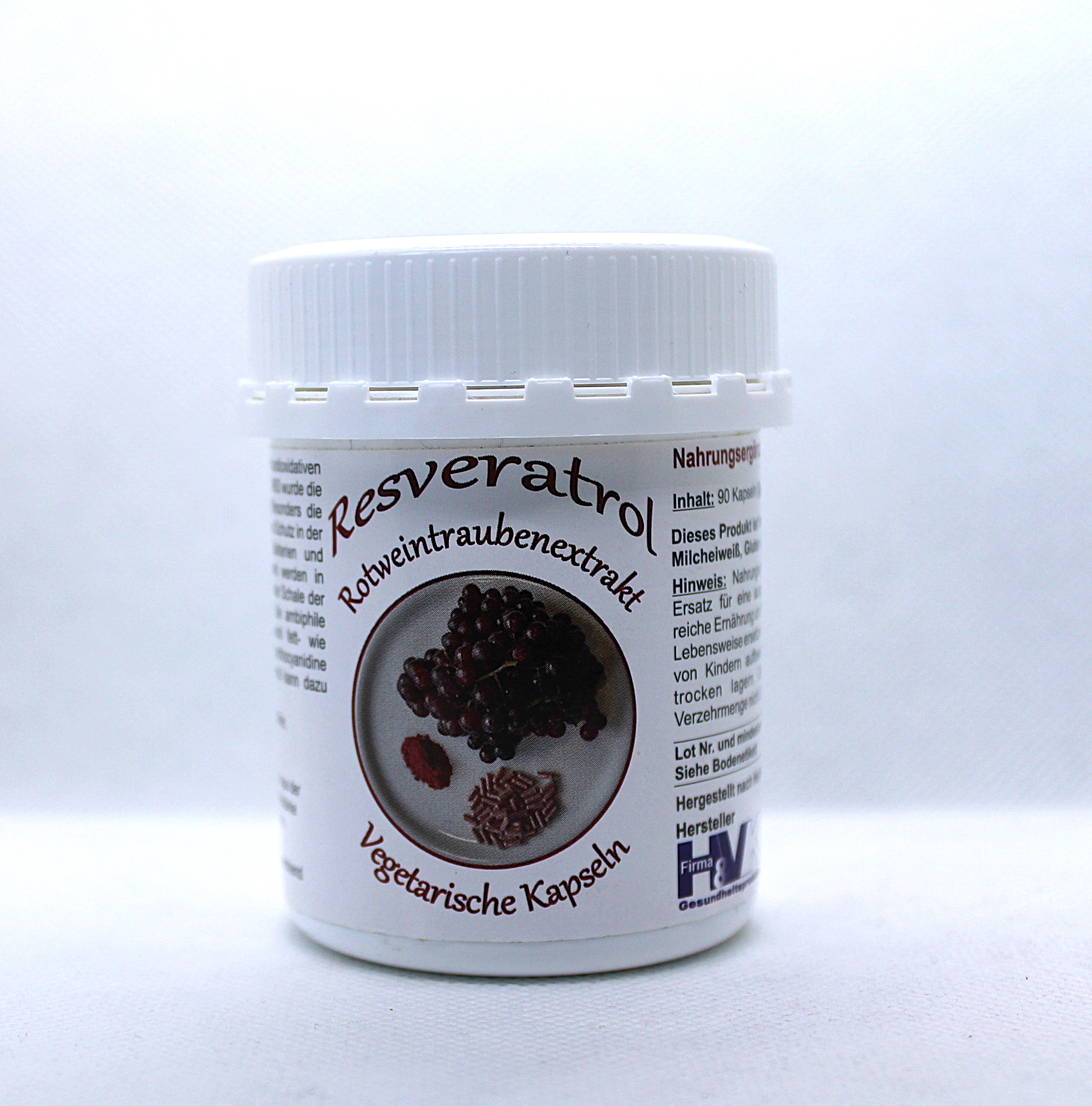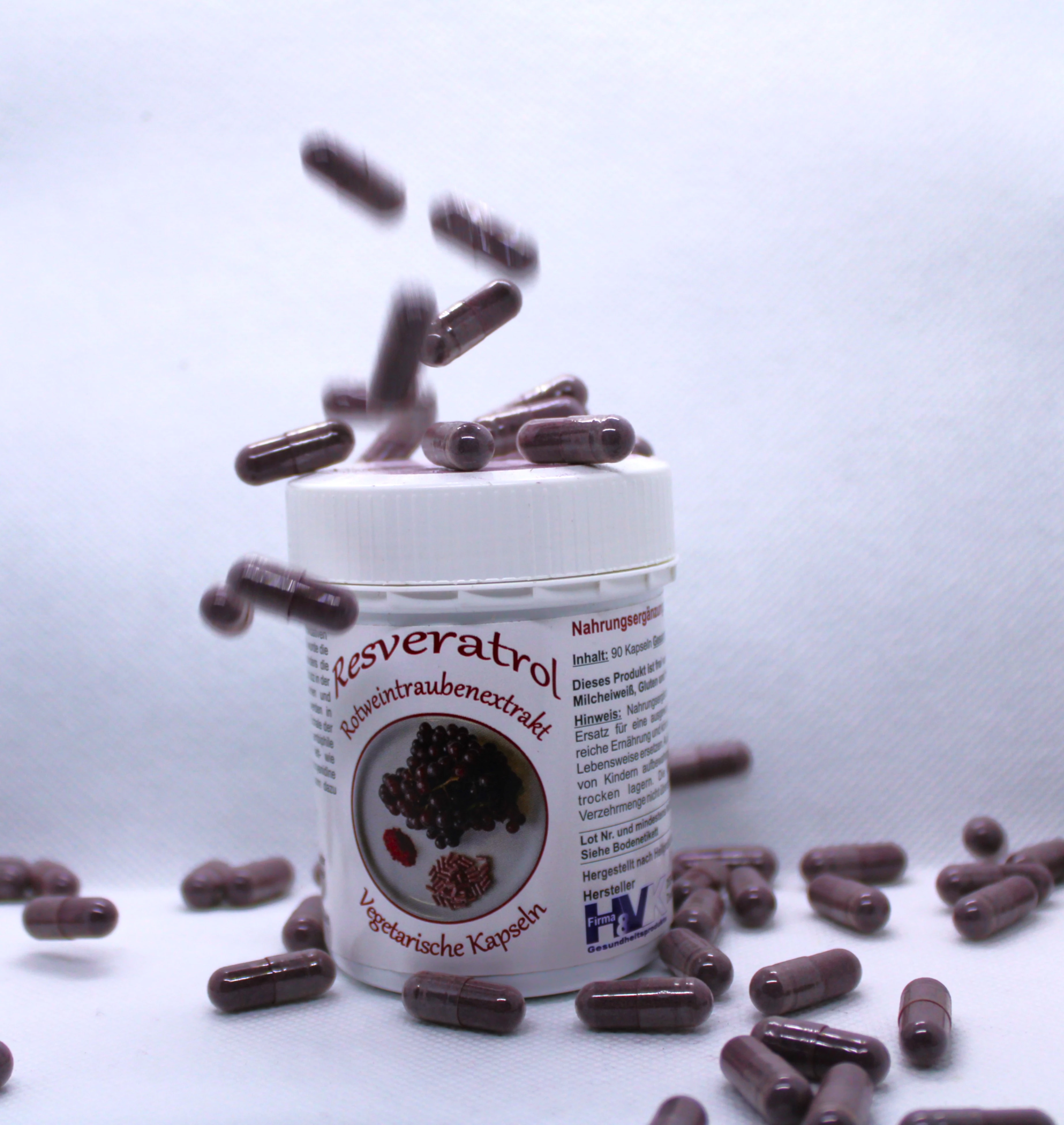 Eine Kapsel enthält 150mg reines hochwertiges Resveratrol aus der Schale der roten Weintraube.